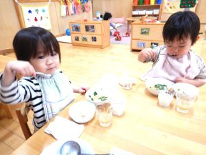 よく知っている大人が調理している姿を見たことで、食事や食材への興味がさらに広がっているようです。